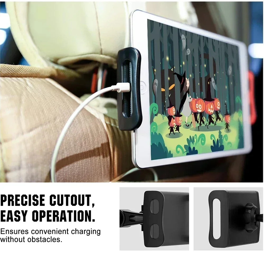 Adapta-se ao encosto de cabeça cuja largura entre dois postes de metal é de 4,7 pol. - 5,9 pol.Modelo de fivela: Este suporte para encosto de cabeça para tablet e carro é totalmente compatível com todos os tablets de 6"-12,9" e todos os telefones celulares de 4,5"-8", etc.(MODELOS DE CARRO NÃO COMPATÍVEIS - Subaru Forester/ Wrx.Nota: A distância entre dois postes de metal no encosto de cabeça do carro deve ser de 4 a 5.9 polegadas, verifique seu encosto de cabeça antes de comprar este modelo.)?360° Rotação e ajuste ? - O suporte para tablet para encosto de cabeça do carro tem conexão de esfera giratória para rotação de (360) graus com mecanismo de inclinação, é ideal para retrato ou paisagem, a rotação multiângulo permite uma variedade de ajustes de posição diferentes para obter o melhor ângulo de visão que você deseja.braço forte e flexível.?8,6 "Extensão de longa distância? -Ele pode esticar facilmente até no máximo 8,6 polegadas, proporcionando uma visão mais próxima do seu vídeo, tornando a vida mais fácil (Apenas para modelo telescópico)?Entretenimento perfeito no banco traseiro? - Este suporte para encosto de cabeça de carro especialmente projetado para encosto de cabeça de carro, deixe seu filho ou outros passageiros do banco traseiro se divertirem enquanto dirige com longas distâncias.Ideal para passageiros traseiros assistindo filmes, lendo e-books, jogando, etc.durante viagens de estrada.?Proteção segura e estável? - O design do interruptor mecânico do suporte para encosto de cabeça do carro pode segurar seu tablet com firmeza.Uma almofada de esponja macia protege seu equipamento contra vibrações e arranhões, e fortalece o atrito entre os dois para maior aderência e pode suportar soldas e quedas, sem se preocupar, você pode desfrutar do seu vídeo ou filme durante as viagens de carro.?Haste telescópica triptável ? - O tubo de mola em liga de alumínio se ajusta a uma ampla variedade de assentos de carro.Pressione o lado extensível do tubo para encaixar facilmente o berço. Modelo telescópico: